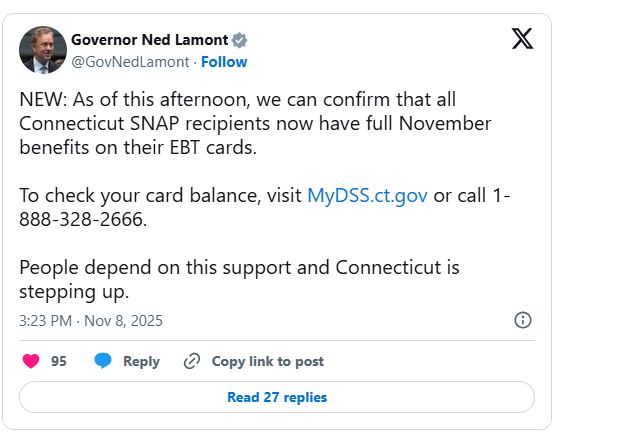 Local News – Gov. Ned Lamont has confirmed that all Connecticut residents now have full benefits on their EBT cards